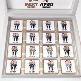 1 -) Ürün, beyaz renk şık ve kaliteli hediye kutusu içerisinde gönderimi sağlanmaktadır.2 -) Hediye Kutusu ölçüleri :22 x 22 x 3,50 cm.dir.3 -) Tercihe bağlı olarak 16'li,32'li ve 48'li adetlerden sipariş verebilirsiniz. Çikolatalar kare şeklinde sütlü çikolatadır.4 -) Çikolatalarımız MABEL olup taptazedir. Çikolata ölçüleri 4 X 4 cm.dir.5 -) Ürün kişiselleştirme çikolata ambalajı üzerine ve çikolata kutusunun iç yüzeyine yapılmaktadır.6 -) Seninle Büyük Aşkımız Karikatürlü Çikolata Kutusu hafta içi saat 14.00'a kadar verilen siparişlerde Aynı Gün Kargoya teslim edilmektedir.6 -) Lütfen Dikkat; karikatür çalışmasının daha kaliteli olabilmesi için yükleyeceğiniz fotoğrafın ön cepheden çekilmiş olmasına ve net olmasına önem gösteriniz.7 -) Ürünler üzerindeki karikatür çalışması elle çizim olmayıp, bilgisayar programları aracılığıyla karikatür çalışması yapılmaktadır.Ürün Etiketleri