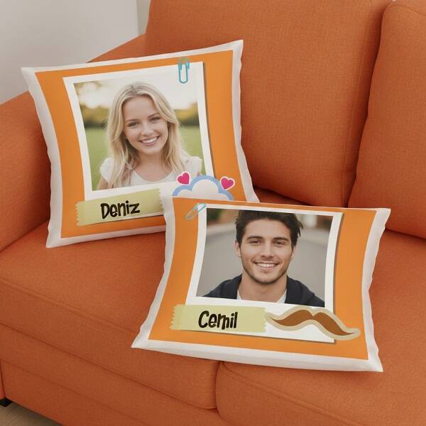 Fotoğraflarınıza ve isimlerinize özel olmasıyla, zaten sevgilinizin gözünde çok büyük bir anlam kazanacak olan Sevgililere Özel 2'li Aşk Yastık, aynı zamanda şahane tasarımıyla da çok beğenilecek! Çünkü bu romantik yastık setini hazırlarken sımsıcak turuncu renkler kullandık ve etrafını da ataçlar, gözlük, bıyık, kalp sembolleriyle süsledik! Kişiye Özel olarak hazırlanacak Sevgililer İçin 2'li Yastık tamamen size özel olarak hazırlanıyor. İstediğiniz 2 fotoğrafa ve isimlerinize özel olarak dizayn edilecek olan Sevgililere Özel 2'li Aşk Yastıkları, sevgilinize en güzel yılbaşı hediyesi olacak.