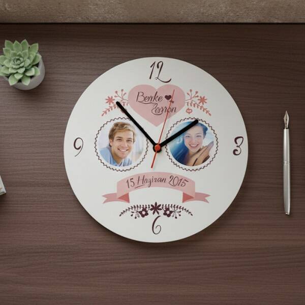 Sevgililere Özel Fotoğraflı Duvar Saati