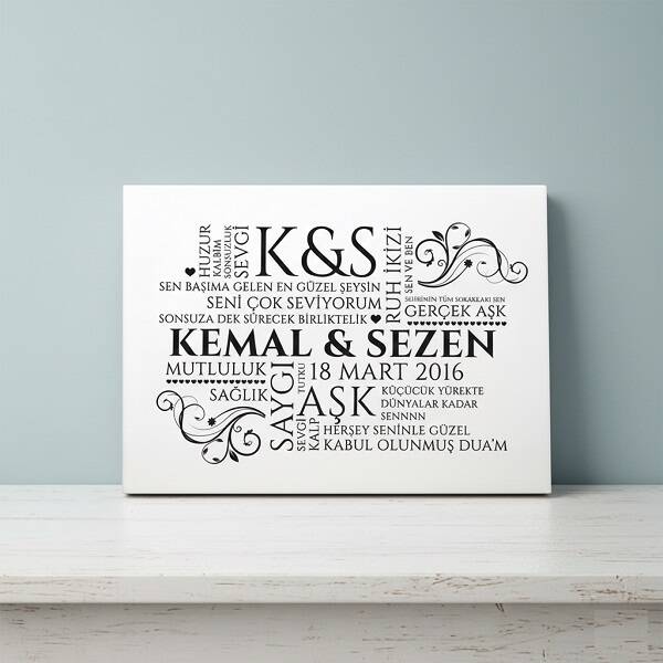 1 -) Sevgilinize özel Kanvas Tablo 38 x 26 cm. ölçülerine sahiptir.