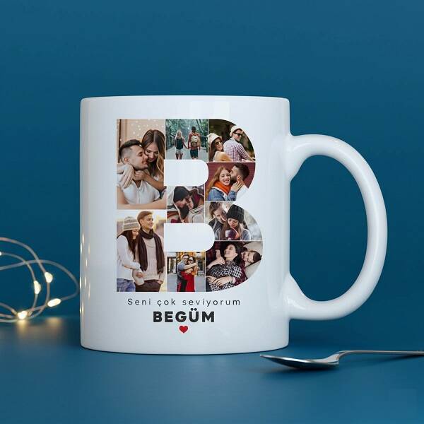 Sevgiliye Hediye Fotoğraflı Harf Kupa Bardak