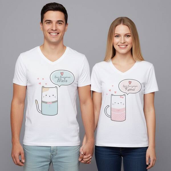Yaz aylarının en hafif ve en çok tercih edilen kıyafetleri tişörtlerdir. Baskılı ve sevgililere özel tişörtler ise bu güzel kıyafeti daha da cazip hale sokuyor. Biricik sevgilime ne alsam, ne alsam diye heyecanlı bir araştırma içerisindeyseniz, kaliteli baskısı ve kedicik tasarımıyla bir o kadar sevimli bir karakter sergileyen Sevimli Kedicikler 2'li Sevgili Tişörtleri tam da size göre bir hediye seçeneğidir. Üzerine ister seni seviyorum mesajınızı, ister gönlünüzden geçen ve sevgilinizin de bilmesini - duymasını istediğiniz dilediğiniz romantik sözlerinizi taşıyabileceğiniz sevgili tişörtlerinizle, tüm hayran bakışlar sizin üzerinizde toplanacak.