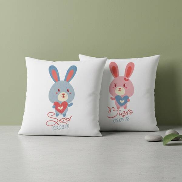 Birbiri ile oldukça uyumlu ve yakışan çiftlere özel şirin bir enerjisi bulunan bir ikili yastık tasarladık. Üzerinde ellerinde kalp tutan sevimli tavşanların bulunduğu yastık setini son derece uyumlu bulduğunuz bir çifte ev hediyesi veya düğün hediyesi olarak götürebilirsiniz. Üzerine dilediğiniz iki ismi ve tarihi yazdırabileceğiniz Sevimli Tavşanlar İkili Yastık Seti ile ister sevgilinize istersenizde evine gideceğiniz yeni evli çift arkadaşınıza gönül rahatlığı ile hediye edebilirsiniz. Çift hediyeleri dendiğinde belli başlı hediye alternatiflerinden birtanesi olan yastıklar en güzel tasarımları ile hediyemen.com'da sizleri bekliyor.