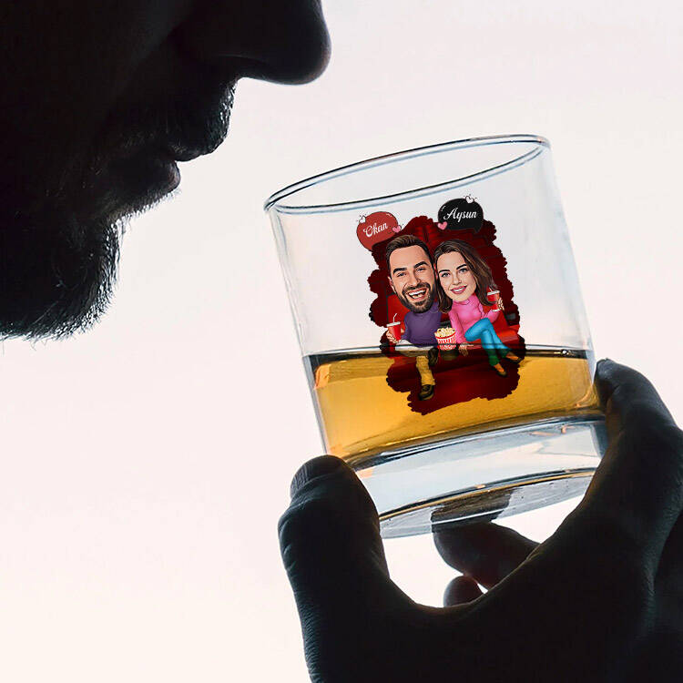 Sinema Sever Çiftler Karikatürlü Viski Kadehi