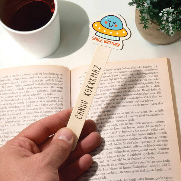 Kitap okuma deneyiminizi uzayın derinliklerine taşıyın! Bu ahşap kitap ayracı, üzerindeki şirin uzaylı sembolüyle sizi farklı bir dünyaya götürecek. İsme özel olarak tasarlanmış bu ayracı kullanarak, her sayfa bir uzay macerasına dönüşsün.