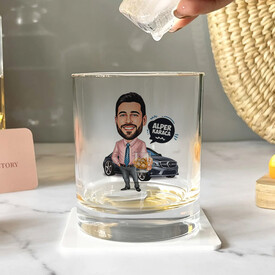 Siyah Arabalı Erkek Karikatürlü Viski Bardağı