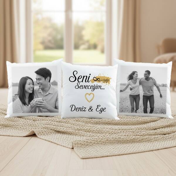 Sonsuz kere dünyaya gelsem, sonsuz kez onunla sevgili olmak ister ve sadece onunla bir gelecek planlardım diye düşünenlerdenseniz, işte bu 3 lü yastık seti tam size göre. 2 si üzerine siyah beyaz resminizin; ortasına ise isimlerinizin yazılı olacağı bu romantik yastık seti ile sevgilinize acayip etkileyici bir hediye verebilirsiniz. 3 adet yastıktan oluşan ve göndereceğiniz resmin siyah beyaz olarak üzerine basılacağı Siyah Beyaz Sonsuz Aşkımız 3 lü yastık Seti ile sevgilinize aşkınızı benzersiz bir biçimde gösterebilirsiniz.