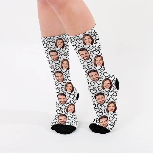 Siyah Kalpler Karikatürlü Sevgiliye Özel Çorap