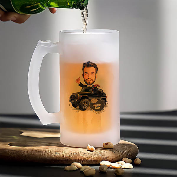 Siyah SUV ve Ben Karikatürlü Bira Bardağı