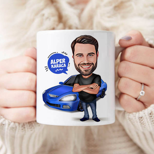 Spor Araba Aşığı Erkek Karikatürlü Kupa Bardak
