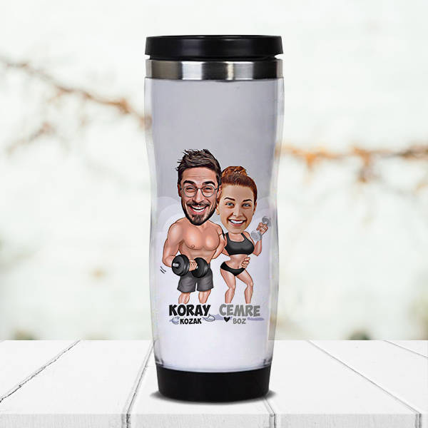 Sporcu Çiftler Karikatürlü Termos Bardak