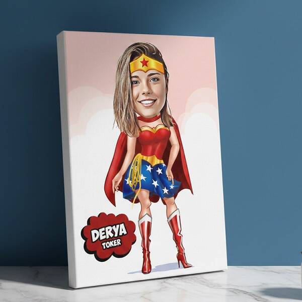 Süper Kadın Karikatürlü Kanvas Tablo