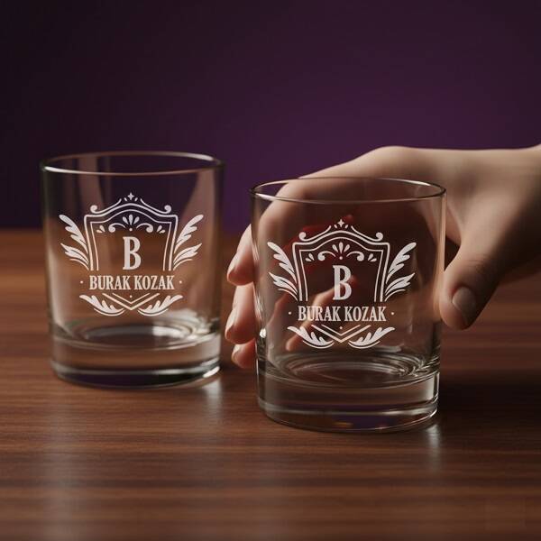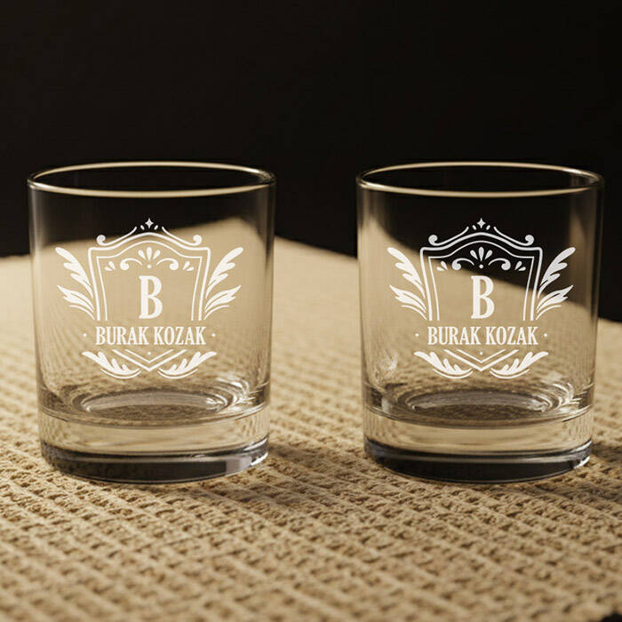 Süslü Tasarımlı İsimli İkili Viski Bardağı