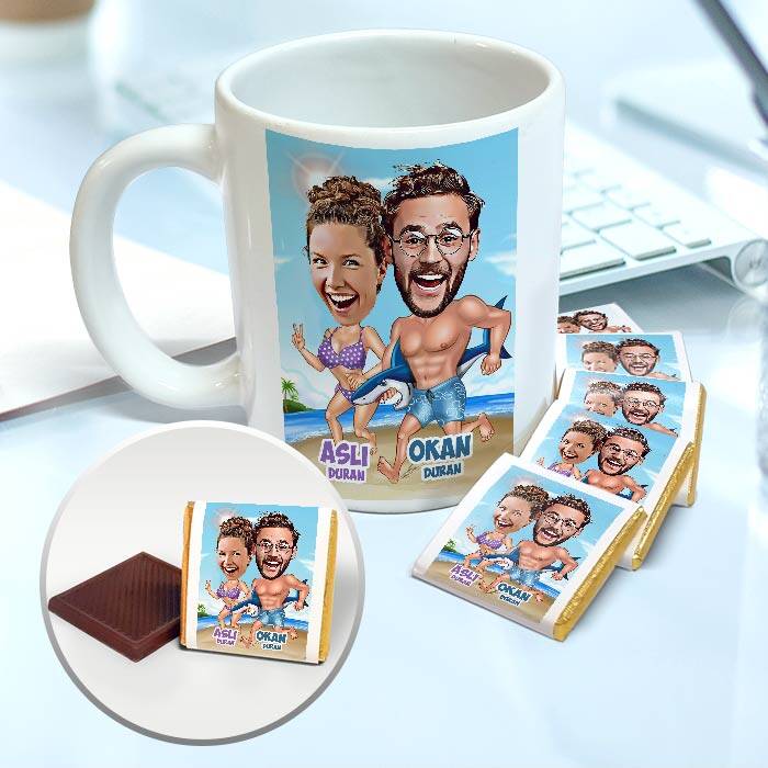 Birlikte yaşadığınız unutulmaz tatil anılarına özel bir hediye! Kişiye özel tasarlanmış kupa bardak ve altı adet sütlü çikolata ile birlikte o anları yeniden canlandırın. Bardaktaki çizim, tatil maceranızın en güzel anlarını anlatırken, çikolatalarla birlikte güneşin ve aşkın tadını çıkarın.