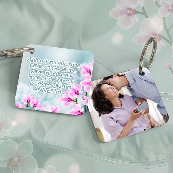 2 - ) Anneye Özel Fotoğraf ve Mesaj Baskılı Kare Anahtarlık ön yüzüne resim, arka tarafına ise eklemek istediğiniz yazıyı yazdırabiliyorsunuz.