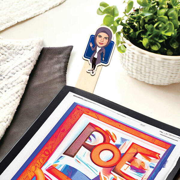 Zarif ve özgün bir stilin temsilcisi her sayfada olsun! Tesettürlü zarif kadın karikatürlü çubuk kitap ayracı, her sayfada şıklığın ve zarafetin tadını yansıtır. Kitapları okurken sadece kelimelere değil, stilinize de hayran kalın!