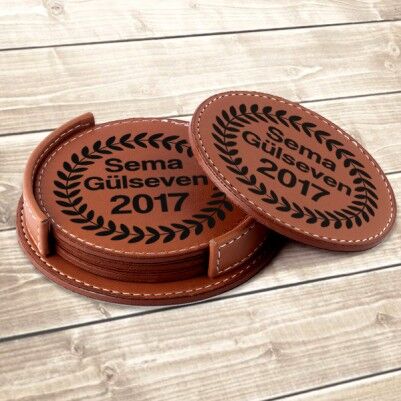 Kişiye Özel Deri Bardak Altlığı Seti TABA