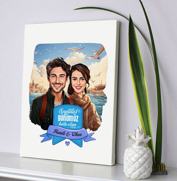 Deniz kokusu, Martı sesleri ve el ele tutuşmuş bir çift… vapurda geçen romantik anlarınızı ölümsüzleştirmenin en güzel yolu işte burada! Sevgilinizle birlikte karikatürünüze özel hazırlanan bu kanvas tablo, denizin sonsuzluğunda aşkınızı resmedecek. Sanki her gün boğaz’da romantik bir yolculuğa çıkıyormuşsunuz gibi hissedeceksiniz!