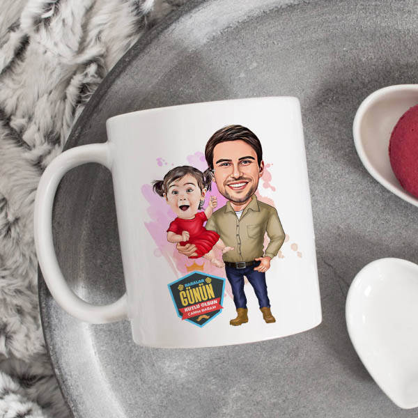 Yakışıklı Baba ve Kızı Karikatürlü Kupa Bardak