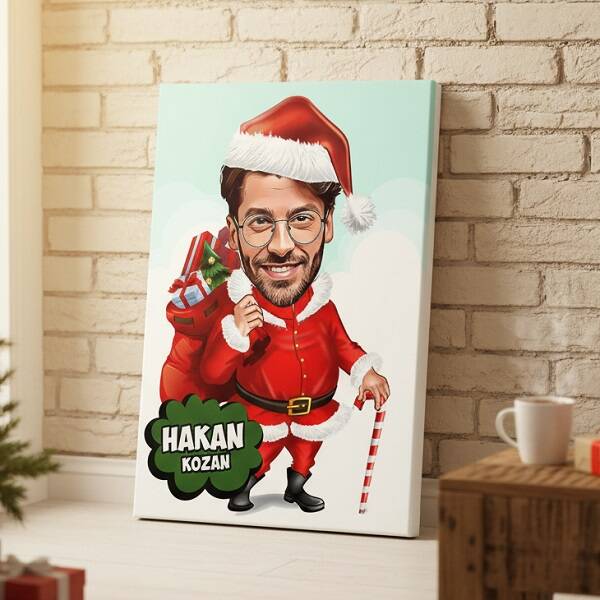 Yakışıklı Noel Baba Karikatürlü Kanvas Tablo