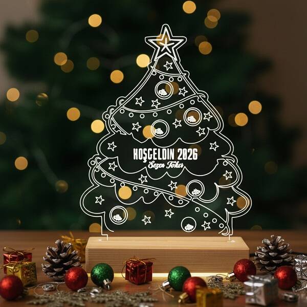 Yılbaşı Çam Ağacı Kişiye Özel 3D Lamba