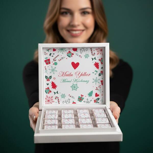 1 -) Ürün, beyaz renk şık ve kaliteli hediye kutusu içerisinde gönderilmektedir.2 -) Hediye Kutusu ölçüleri :22 x 22 x 3,50 cm.dir.3 -) Tercihe bağlı olarak 16'li,32'li ve 48' adetli olarak sipariş verebilirsiniz. Çikolatalar kare şeklinde sütlü çikolatadır.4 -) Çikolatalarımız MABEL olup tazedir. Çikolata ölçüleri 4 X 4 cm.dir.5 -) Ürün kişiselleştirme çikolata ambalajı üzerine ve çikolata kutusunun iç yüzeyine yapılmaktadır.6 -) Yılbaşı Dileklerim Mesajlı Çikolatalar hafta içi saat 14.00'a kadar verilen siparişlerde Aynı Gün Kargoya teslim edilmektedir.Ürün Etiketleri