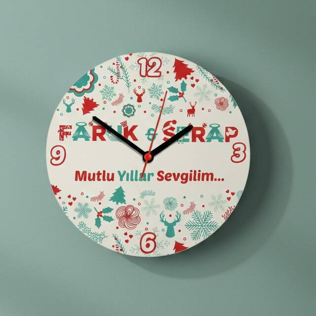 Yılbaşına Özel İsim ve Mesaj Baskılı Duvar Saati